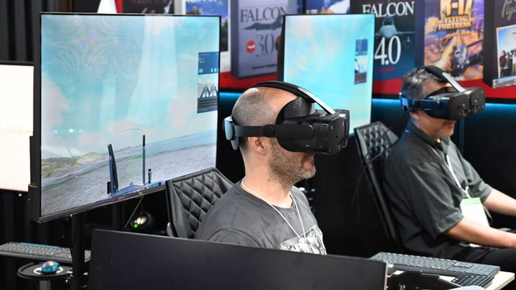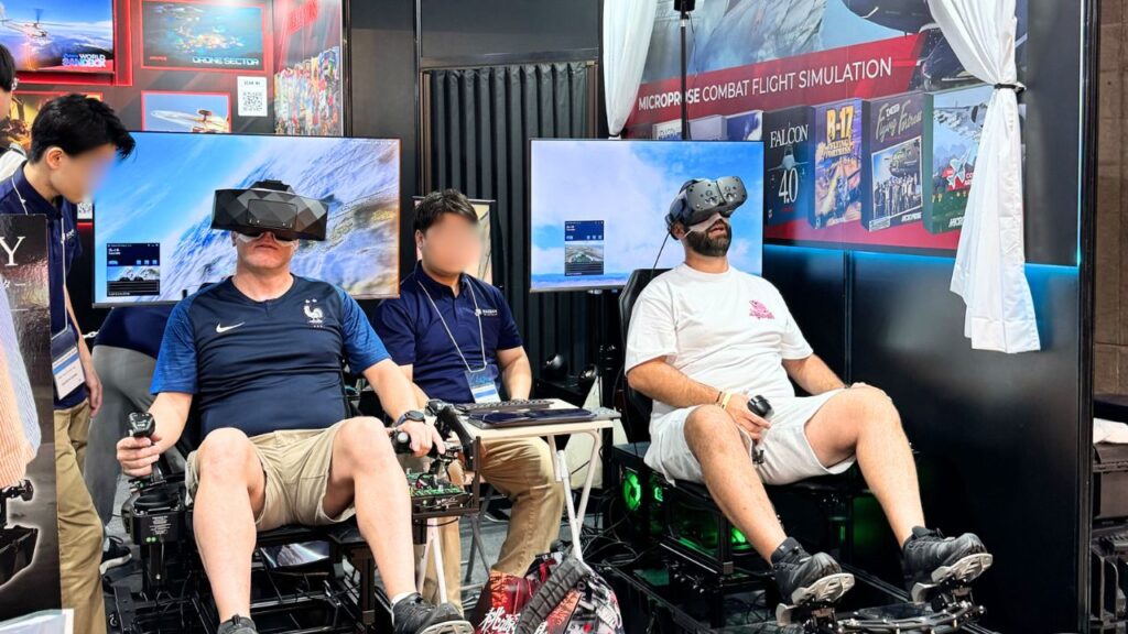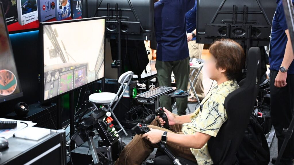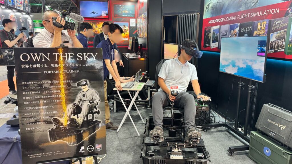 戦闘機コックピットを再現した実機構造と、VRヘッドセットによる圧倒的な臨場感に、多くの来場者が息をのむ姿が見られました。