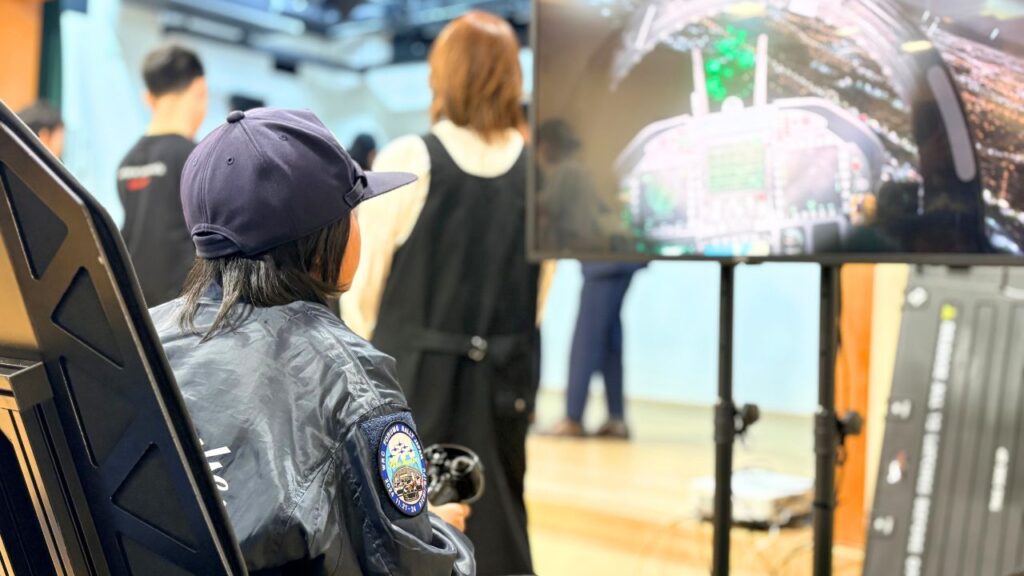 イベント中には、ゲストの奥山氏によるデモンストレーションも実施され、来場者はフライトシミュレーターが生み出すリアルな“空の世界”と、奥山氏の卓越した操縦技術に目を奪われ、感動の声を上げていました。
